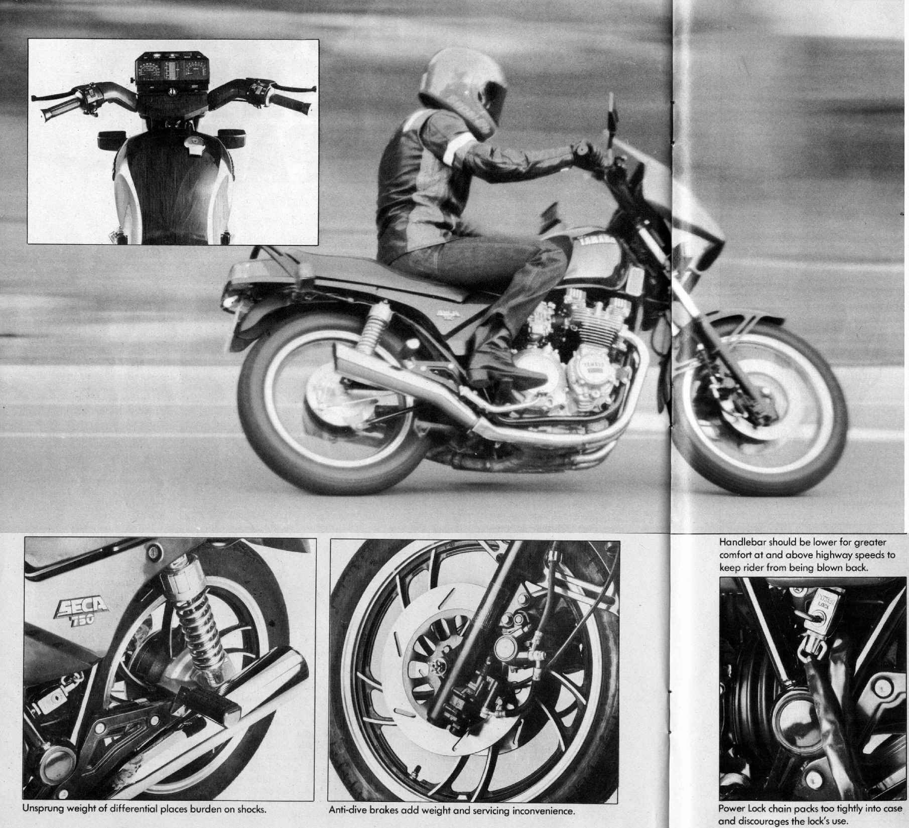 You can't help but notice the Yamaha Seca 750. Its unique, integrated styling and