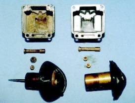 after cleaning. The parts on the left are as removed. This carburetor was last
