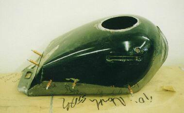He cut off the bottom of the 550 tank, and placed it over the 650, lifting the back 3" with the 550 filler neck resting on the 650 tank. He then scribed a line on the 650 tank where they met and cut the top of the 650 tank off 1/2" above the line. The cut ends were flanged and held with temporary aircraft fasteners while they were welded. Basic bodywork finished the job.