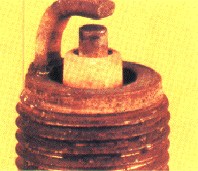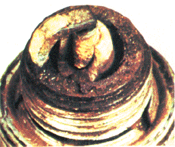 The plug below was caused by preignition and failure to repair this condition will cause engine damage. Check for the following: