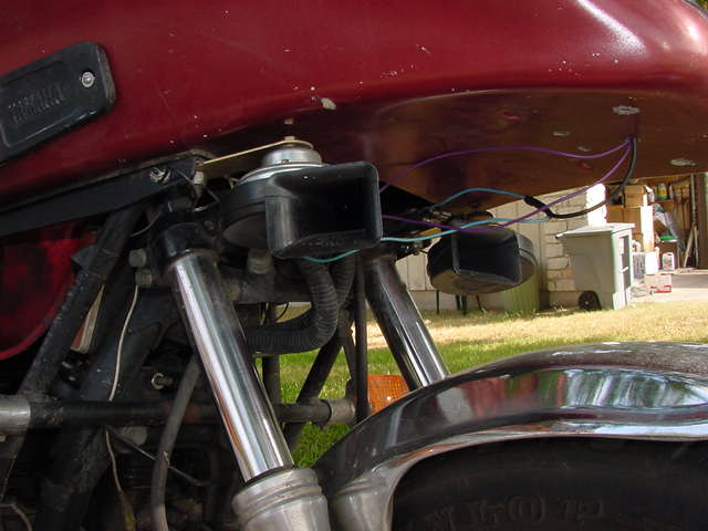 grounded one pin of each horn to the frame. The switching 12 volt supply,
