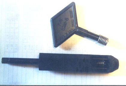 The spring steel insert is installed into the hole using a special tool, also supplied with the kit. The design of the tool has changed over the years. Two different designs are pictured here.