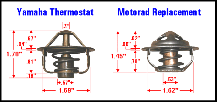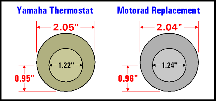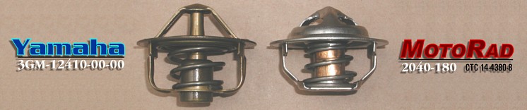 equal aperture diameters. The search eventually ended with a single HIGH FLOW thermostat, with all the right dimensions, a MOTORAD 2040-180, Canadian Tire Part# 14-4380-8.